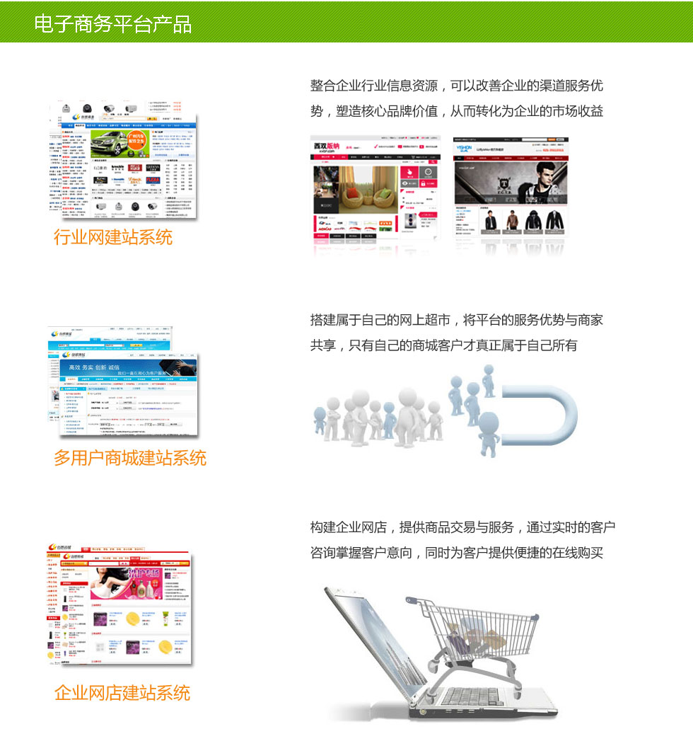 用户可以选购这些产品的商业版进行电子商务建站或提供个性化需求方案进行定制开发