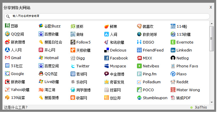 但是由于维护大量的社会化媒体接口需要耗费大量的工作时间,所以推荐使用第三方的工具,比如现在国内使用最多的jiathis.com分享按钮。